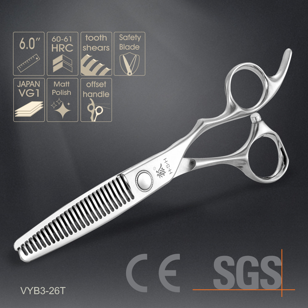 Điều này mỏng hơn là phải cho mọi cắt tóc. Sử dụng thép VG1 cao cấp của Nhật Bản, Cảm giác cắt mịn, sắc nét và chính xác. 26 răng loại bỏ khoảng 25-30% tóc.